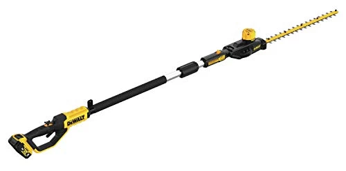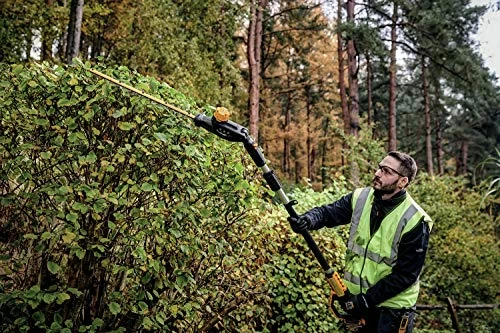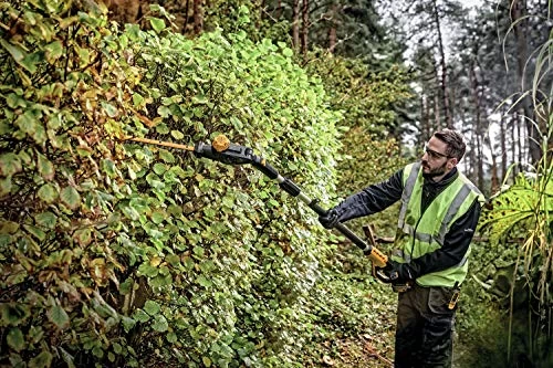 This Pole Hedge Trimmer is designed to cut through a variety of landscape overgrowth. The pole hedge trimmer has a high output motor and 22 in. hardened steel laser-cut blades engineered for clean, fast cuts on branches up to 1 in. thick. The 7-position, 180?, articulating head allows you to customize cutting angles for hedges of any shape and size. When fully extended, the pole hedge trimmer can be extended up to a 12 ft. max reach.