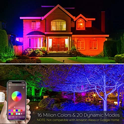 This is a 15W LED Bluetooth Smart Floodlight that combines daily lighting with rich color lighting. It is easy to operate and adjust brightness, and has a large illumination angle for a variety of applications. It has super bright 2700K warm white light, 1200 lumens, CRI > 85Ra. 16 million colors, music rhythm and multiple modes. In addition, it offers a 2-year warranty and a 90-day money back guarantee.