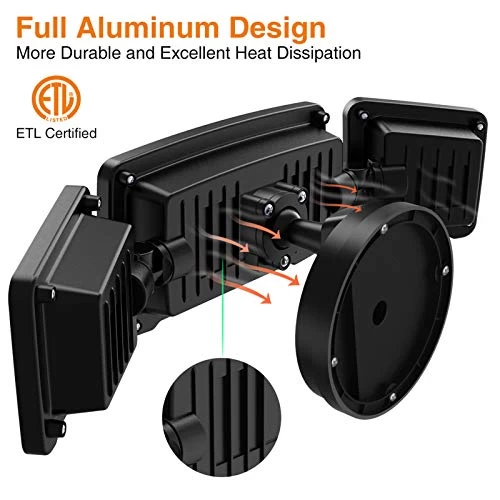 FULL METAL DESIGN SECURITY LIGHT: The security LED lights is made of FULL Aluminum, have excellent heat dissipation, which is more durable than other brands, perfect to light up your backyard, garage, porch, entryways, barn, shop, garden, stair or alley etc outdoor usage. The lifespan will be up to 50,000hrs.