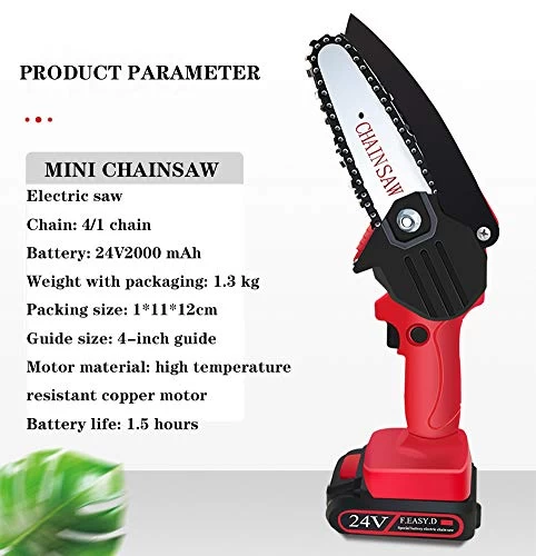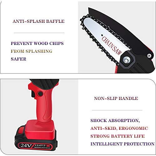 [FLEXIABLE AND LIGHTWEIGHT-CHAINSAWS] The portable electric chainsaw with premium non-slip handle , This mini chainsaw weighs only 0.7kg and has a total length of only 33cm (13 inches). Women can easily control and use it, and long hours of work will not be tiring.