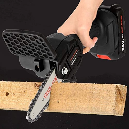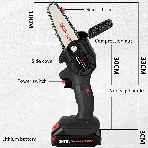 2. The mini chainsaw comes with a high quality chain and has lightweight design, making it the ideal tool for cutting firewood, trees branches pruning and gardening.