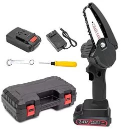 The mini chainsaw comes with a high quality chain and has lightweight design, making it the ideal tool for cutting firewood, trees branches pruning and gardening.