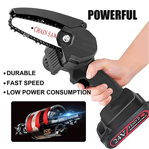 【PROTABLE&DURABLE for LIFE】 The portable electric chainsaw with premium non-slip handle ,The portable chainsaw is equipped with a 2000mAh rechargeable battery,without battery just about 0.7kg and a total length of only 33cm (13 inch), the chains saw can be held with one hand very comfortable for man and women, you will not feel tired with long time holding.This chainsaw has overload protection and it is very resistant to drops and wear. Great for your different needs.