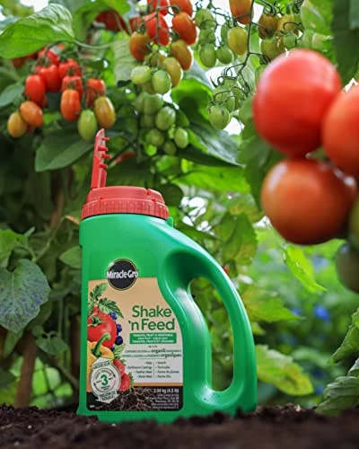 Miracle-Gro Shake ’n Feed Tomato, Fruit & Vegetable Plant Food 10-5-15 2.04 kgEnjoying fresh picks from the garden is a big part of the joy of growing your own plants. Get better quality, longer-lasting fruits and vegetables with Miracle-Gro Shake ’n Feed Tomato, Fruit & Vegetable Plant Food 10-5-15. Specially formulated for edible plants, it nourishes above and below the soil. This formula contains calcium, which is essential for strengthening cell walls and preventing calcium-deficiency disorders. That’s important because strong cell walls help reduce root rot and lessen fruit cracking or splitting. Miracle-Gro Shake ’n Feed Tomato, Fruit & Vegetable Plant Food 10-5-15 also contains organic ingredients like kelp, earthworm castings, feather meal, and bone meal. Microbes in the soil break these ingredients down, delivering nutrients that support root strength and development. Easy to shake on. Feeds for up to 3 months.