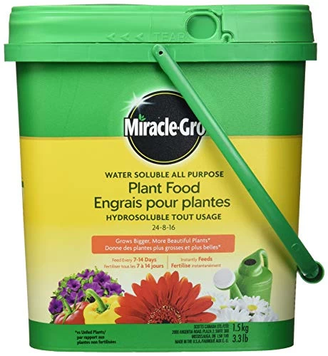 Keep all your plants healthy, happy, and well fed with Miracle-Gro Water Soluble All Purpose Plant Food 24-8-16. This is the all-purpose plant food that has it all: easy to use, works instantly, and provides quick, beautiful results. Works on all flowers, all vegetables, all trees, and all shrubs. Grows Bigger, More Beautiful Plants. Plus, Miracle-Gro Water Soluble All Purpose Plant Food 24-8-16 mixes up fast with just water. Feed with a watering can. Or, for even more convenience, use one packet and a garden hose with the one-handed Miracle-Gro Garden Feeder.