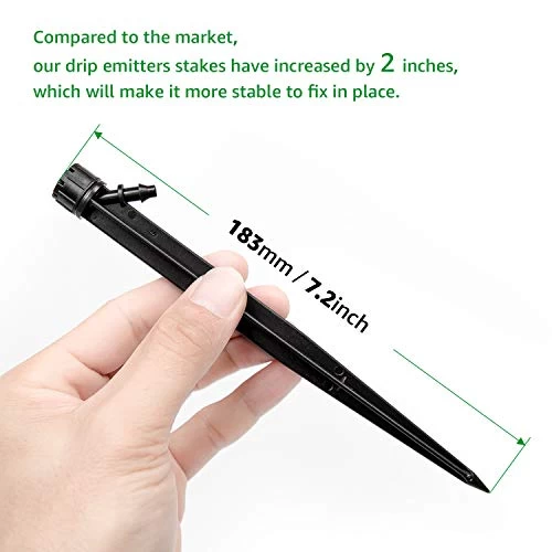 Height 16.5cm/6.5inch, compared to the market, our drip emitters stakes have increased by 1.18 inches, which will make it more stable to fix in place.