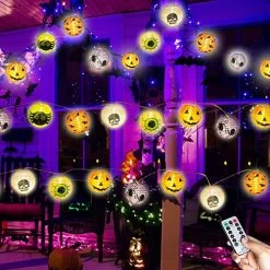 8 Lighting Modes: These Halloween string lights with 8 different lighting modes, different lighting effects are controlled by the button on the battery box or the remote contarol, IR remote control with a range of about 5 yards for on/off and 8 modes setting. Powered by 3x AA batteries (not included), durable, safe and easy to use.
