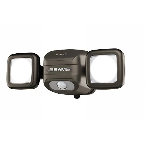 The mr beams net bright high performance LED security light instantly increases safety and security around the home. Providing 500 lumens of bright light and two adjustable heads that cover up to 800 square feet, the motion-activated spotlight is like having two outdoor security lights in one. Net bright technology allows the outdoor spotlight to communicate with other net bright lights. Create up to four networks with up to 50 lights on each for sophisticated, affordable home security lighting. Because the outdoor motion light is battery powered, it can be installed almost anywhere in minutes with the included screws, including garages, doorways, sheds, fences and trees. The security light is motion activated with auto shut off to prolong battery life.