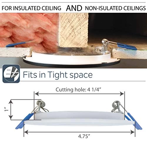 Nadair, 4’’ LED Recessed Ultra Slim Lights, 1-pack, IC rated, Dimmable, 12W=80W, 900 Lumens, 3000K ( Warm White), Large Junction box, Quick Connect System, White finish, Brushed Nickel Trim included