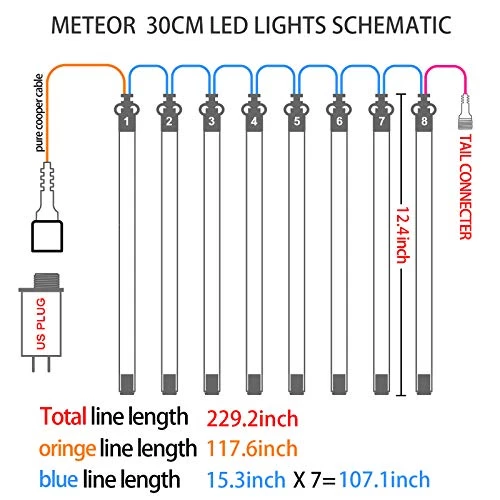 ★ Meteor Shower Effect with Romantic Aesthetic: Led meteor shower lights, the light of every bulb turns on and out one by one in sequence and quickly just like meteor shower or falling snow in the night sky, multi-colored, very beautiful. It can be used as one, or be connected (as much as five string lights).