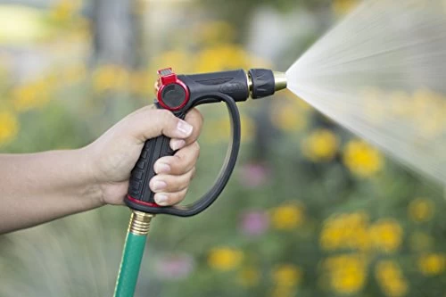 Orbit Pro Flo Pistol Nozzle ā Thumb control, D-grip, contractor adjustable nozzle. Fully adjustable from a light spray for small tasks to a powerful jet spray for heavy-duty jobs. Convenient thumb control allows a quick adjustment of water flow without going back to the faucet. Nozzle design maximizes spray distance. Constructed of heavy-duty metal with durable rubber grip. 5 year . ā Color: Black, Material: Metal, Water Flow Control: Thumb Control, Spray: Adjustable, Pkg Qty: 1, Package Type: Card Warning: This product contains chemicals know to the state of California to cause cancer birth defects and other reproductive harm. ā