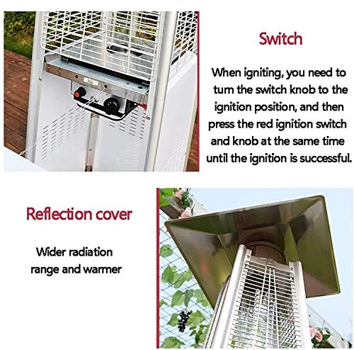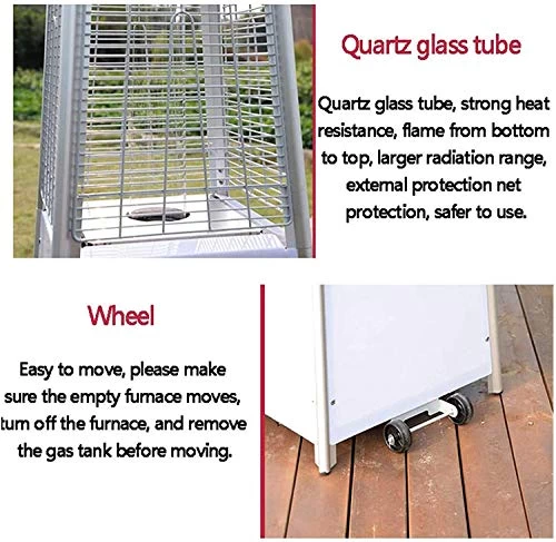Durable: This patio heater is made of high-quality pre-painted stainless steel and aluminum. It is waterproof and resistant to weather, sunlight, corrosion and high temperatures.