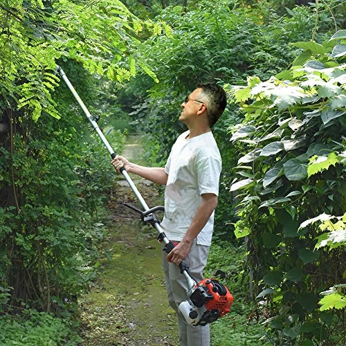[POWERFUL ENGINE]: 42.7cc,1100w, 2-stroke engine which is more powerful and steady. It can cut branches effortless, gas chainsaw also help you save time and energy. It can trim 7-8 inch branches effectively