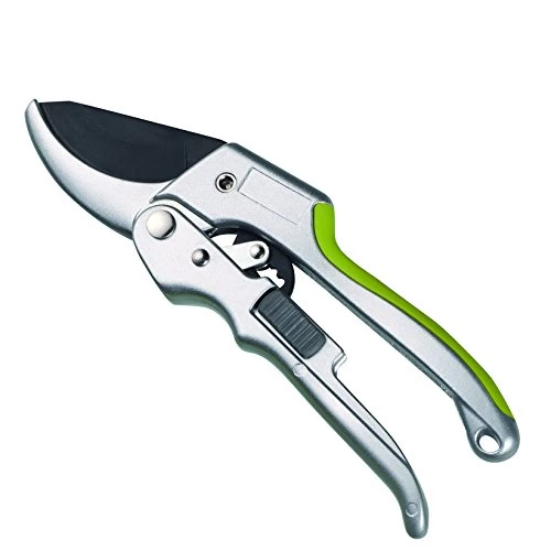 RATCHET PRUNING SHEARS – 5x MORE CUTTING POWER EFFORT LESS CUTTING The ratcheting mechanism’s settings multiply your hand’s power, so that you don’t have to do the work – the pruning shears do it for you. They slice through much thicker branches than conventional pruners, and they’re very easy on your hands. Because they work like a ratchet, they never get dull. The extra power of the ratchet action makes these pruners ideal for heavy jobs. HOW RATCHET ANVIL PRUNING SHEARS WORK Anvil pruners have one sharp blade normally the top blade and a flat, non-cutting blade, or “anvil” at the bottom. When you squeeze the handle, the sharp top cutting blade is brought down on the branch you’re cutting, and the anvil holds that branch in place so that the cut can be completed. RATCHET ACTION – 5 TIMES THE POWER The ratcheting mechanism’s settings multiply your hand’s power by up to 5 times, so that you don’t have to do the work – the pruning shears do it for you. As you cut through a branch, the ratcheting mechanism clicks and moves to the next setting, providing ever-increasing pressure as you cut. PERFECT FOR SMALLER HANDS AND WOMEN Pruning can tire the strongest hands, but if you are already starting out at a disadvantage with carpal tunnel or arthritis, or have smaller hands, you should definitely consider a ratchet pruning shear. 100% CUSTOMER SATISFACTION GUARANTEE Order with confidence! Backed by the Gardenite 100% customer satisfaction guarantee.
