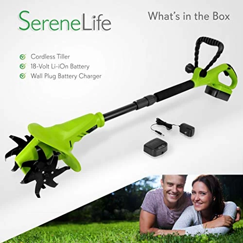 18V CULTIVATOR SYSTEM: SereneLife’s Electric Garden Tiller features 18V power output, 7.9” till path width and 3.2” depth with 280+ rpm operating speed making it a perfect gardening and landscape tool for soil preparation, weeding and composting.