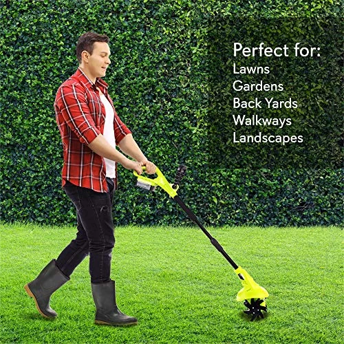 Features: – Electric Garden Tiller & Cultivator System – Landscaping Made Easy: Hassle-Free & Easy-to-Use – High-Powered Spinning Motor – Cordless Design with Rechargeable Battery – Includes Removable Battery & Wall Plug Charge Base – Easy-to-Use, Hassle-Free Control – Integrated Debris Protection Shield – Heavy-Duty, Rugged & Reliable – Angle Adjustable Handle Grip – Perfect for Lawns, Gardens, Back Yards, Walkways, Landscapes What’s in the Box: – Cordless Tiller – 18-Volt Li-iOn Battery – Wall Plug Battery Charger Technical Specs: – Power Output: 18V – Operation Speed: 280+ RPM – Till Path Width: 7.9’’ -inches – Till Path Depth: 3.2’’ -inches – Construction Material: Engineered ABS, Metal Alloy Blades – Working Time: Up to 25-Mins – Battery Charging Time: Approx. 4 Hours, Full Charge – Battery Type: 18V Lithium-iOn Battery, 1500mAh (1.5A) – Power: 120V – Dimensions (L x W x H): 45.3’’ x 8.7’’ x 8.7’’ -inches