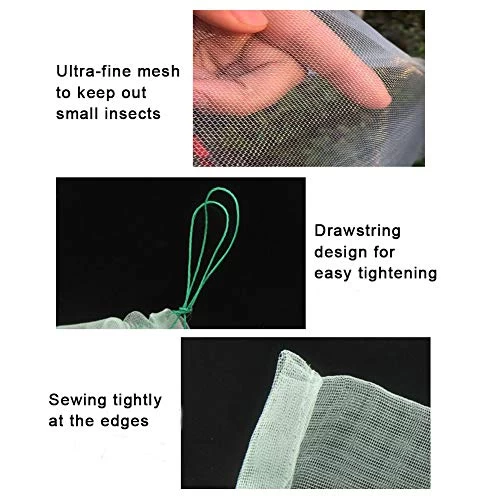 Size: These plant protection nets measure 3.5Ftx2.3Ft and are large enough to be placed over the plant in its entirety without having to bag each fruit