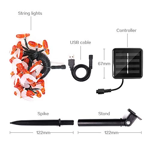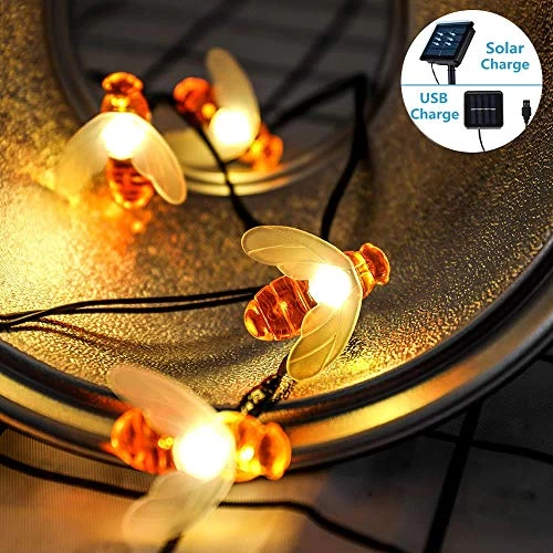 Bee String Lights easy to Operate & Install: Solar panel with garden stakes stand, 2 switches, On/Off and Mode (Steady/Blinking)
