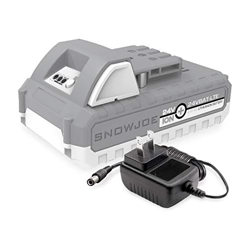 Power up. Power your cordless iON tools the eco-friendly way with the 24-volt iON+ 24V-2AMP-SK1 lithium-ion battery and charger. Compatible with all Snow Joe® + Sun Joe® 24V iON+ models, the 24VBAT-LTE features high capacity 2.0 Ah lithium-ion cells that deliver no-fade power for maximum job performance. Simply insert iON+ LITE into your 24-volt tool of choice and power up instantly without having to mess with gas, oil, pull-cords, or tangled extension cords! Breathe easily and confidently while working with your 24VBAT-LTE since rechargeable battery pack provides cleaner, emission-free air during operation. Although run-times will vary depending on the tool used and the job performed, iON+ LITE charges up for the task in just 80 minutes max. The fuel gauge indicator lights on iON+ LITE will also let you easily monitor your battery’s charge capacity while it is in use. When it is time to charge, simply slide the 24VBAT-LTE into its dedicated 24VCHRG-AC. The 24VBAT-LTE holds its charge well in storage and will retain up to 65% charge for six months. Easy, convenient, reliable, and super-lightweight (only 1 lbs!), the 24-volt iON+ 24VBAT-LTE is the smart way to battery pack for your power trip.