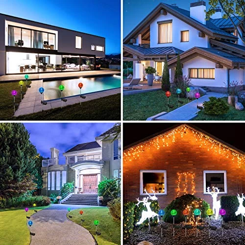 Solar Garden Lights Outdoor, 2 Pack Solar Globe Lights, Color-Changing LED Path Stake Lights Auto On/Off Dusk To Dawn…