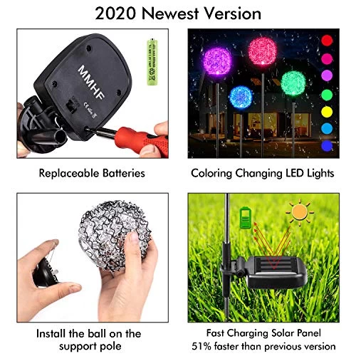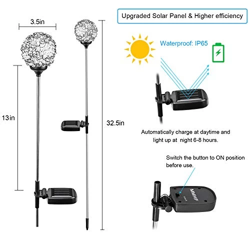 🌷【Newest Version Solar Garden Lights】Larger Globe Powered Garden Light is now of a tame fabric(aluminum), improving quality and appearance to that of a real decorative lights. We also upgraded a wider solar panel which converts sunlight into power faster and more efficient in cloudy weather.►Sold by【MMHF】and Fulfilled by Amazon.All others are fake,Please note when buying!