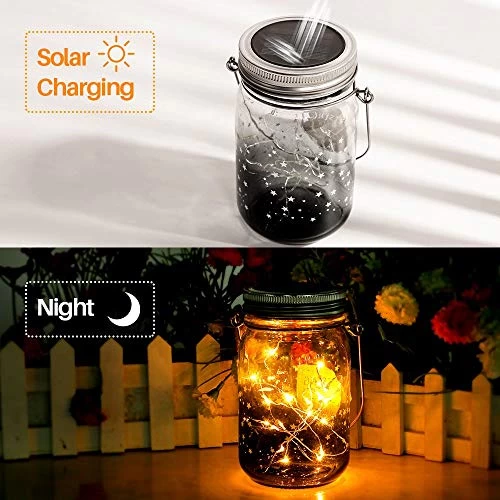 【Solar Powered Energy Saving】While there is enough sunshine the solar mason jar light will get fully charged after 4-6 hours and can lights up for 8-10 Hours.