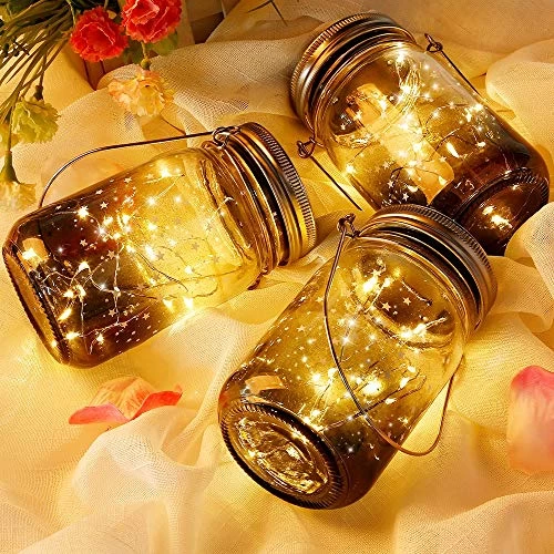 Solar Mason Jar Lights – 3 Pack 30 LED Starry Fairy String Solar Garden Hanging Lights Waterproof Indoor/Outdoor…