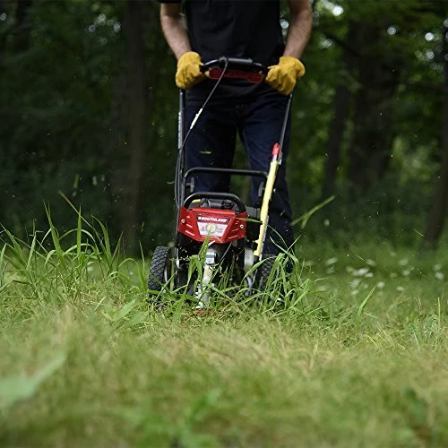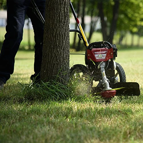 This wheeled string trimmer provides over 35% more torque vs. a typical 25cc hand held string trimmer