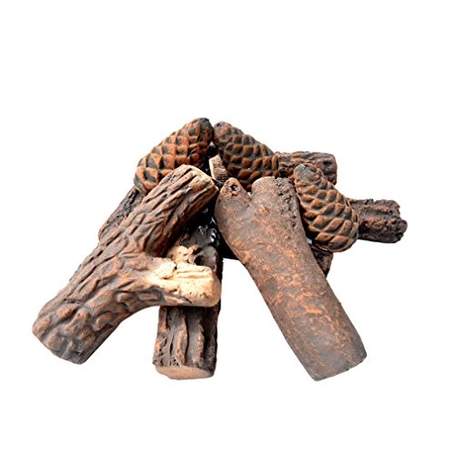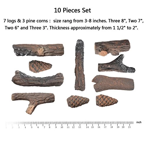 10 piece set of ceramic logs decorate around the house or for small fireplaces.