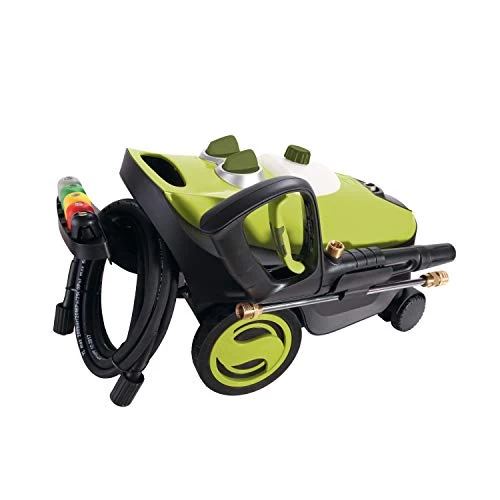 MADE TO MOVE You name it, you aim it, grime is gone! Make your cleaning chores more mobile with the perfectly portable GO ANYWHERE Pressure Washer from Sun Joe. With a compact, lightweight design and sturdy swivel wheels, you’ll be able to clean anywhere around your home with less hassle as you roll from one project to the next! Equipped with a peak-performance 14.5-amp motor, this portable powerhouse blasts up to 1.76 GPM to quickly eliminate greasy residue from concrete, heavy mildew stains, oil stains, caked-on mud, and other stubborn gunk and grime. The convenient onboard, 27 fl oz detergent tank is tank perfect for transporting your favorite soapy solution when waging war on your toughest cleaning tasks. With its 360º rotating wheels, this dirt-decimating dynamo provides maximum maneuverability, and the included extension wand makes accessing tight spaces — such as beneath decks, behind gutters or between the hedges and house — a breeze! SPX3200 comes equipped with Pressure Select Technology, letting you choose from two powerful cleaning options — Low/1450 PSI for everyday dirt and grime, or High/2030 PSI to tackle your toughest cleaning tasks. And the onboard five Quick Connect tips allow you to tailor your spray to suit any cleaning task. Quickly swap interchangeable nozzles to go from a high-pressure 0° pencil point jet to a 40° fan spray, or simply use the soap nozzle to give your cleaning spray a sudsy boost. Fight back against dirt with the SPX3200 — and Go With Joe.