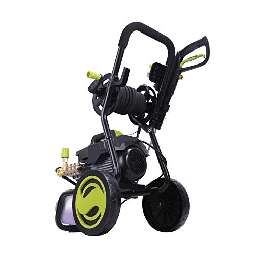 Peak professional power performance. Featuring rugged, pro-quality equipment designed for everyday use at the worksite, restaurant, retail store, repair shop and more, sun joe’s pro series commercial-grade pressure washer spx9009-pro powers through your toughest cleaning tasks and home-improvement projects. With machines made for those who expect the most out of their tools, our pro series pressure washers come with the most-requested top-of-the-line, pro-performance upgrades and features for your most demanding jobs — like sturdy all-terrain wheels, on-board hose reel, steel-frame roll-cage construction, and durable 25-foot steel-reinforced high-pressure hose. Equipped with the high-performance 13.5-amp Motor, spx9009-pro blasts up to 1800 psi and 1.6 Gpm to take on tough grease and oil stains, mildew, caked on mud, tar, rust and other stubborn dirt and deposits. Dial-In the perfect pressure with the adjustable pressure valve, designed to give you complete control over your cleaning projects. select a lower setting for a quick clean; or crank it up to demolish stubborn oil stains, dissolve grease deposits or eliminate grime from grout. And with the 5 onboard quick-connect spray tips, you can select your spray the easy way. Select from 0º, 15º, 25º, 40º, and soap to tackle light, medium and heavy-duty dirt and debris. Swap nozzles to quickly go from precise 0-degree pencil point jet to 40-degree fan spray or apply detergent directly from the onboard 1-gal tank to the cleaning surface with the soap nozzle for additional cleaning power. And every sun joe pro series commercial-grade pressure washer comes backed by sun joe’s complete 2-year warranty for the continuous, reliable performance that you’ve come to expect from the brand behind north America’s top-selling pressure washers.