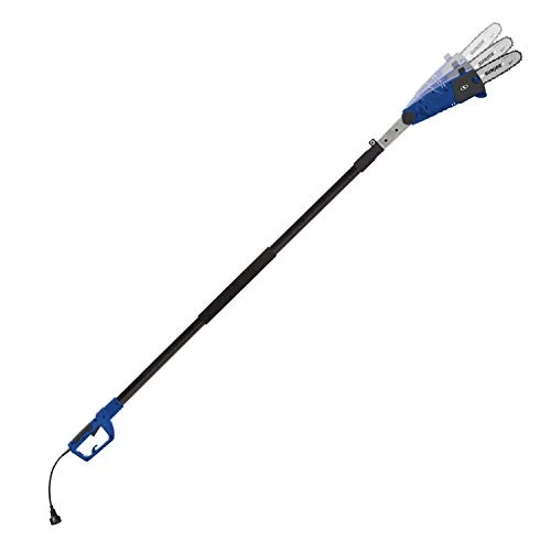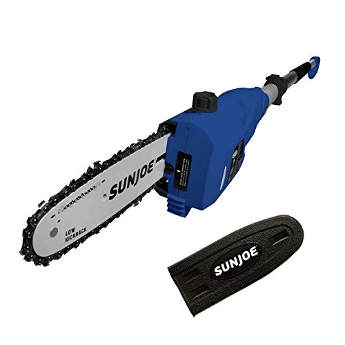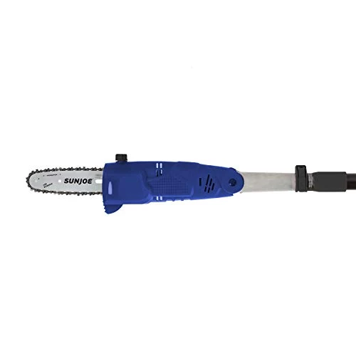 LET GRAVITY DO THE WORK The Sun Joe SWJ802E pole chain saw takes the danger and difficulty out of trimming your overgrown trees. At only 7.9 lbs, the Sun Joe SWJ802E is super lightweight and easy to handle. Stand safely on solid ground and extend its telescoping pole to gain up to 15 feet of overhead reach. Powered by a 6.5-amp motor, the SWJ802E can handle the most stubborn tree limbs up to 7.5-inches thick. This pole chain saw features an 8-inch Oregon bar and chain with an auto-oiler to keep the bar and chain fully lubricated during use. Unique to SWJ802E is a multi-position adjustable head, which cuts from 0º to 30º angles. Unlike gas-powered tools, the Sun Joe pole saw is powered electrically, so you’ll reliably power up with the push of a button without having to deal with smoke, fumes, unpredictable starters or costly tune-ups. Plus, SWJ802E comes equipped with a built-in safety switch to prevent accidental starting. CSA- approved; Full two year warranty.
