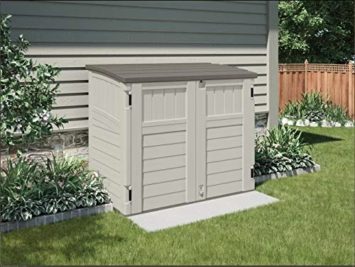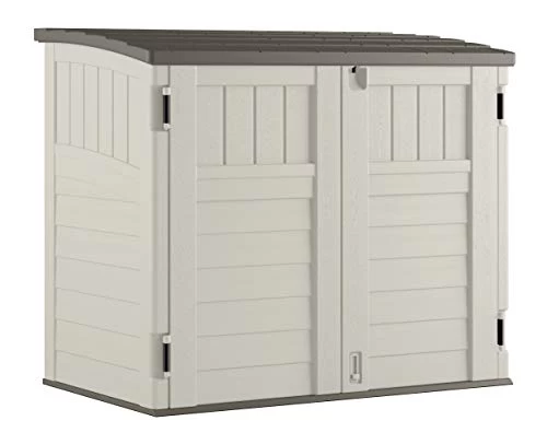 34 CUFT, Horizontal Storage Shed, Constructed Of Durable Double Wall Resin, Easy Lift Lid With Prop Rod, Easy Bolt Secure Assembly Requires Minimal Tools, Reinforced Floor For Heavier Items, Assembled Size: 53″W x 32.25″D x 45.5″H. This product can be used easily. This product is manufactured in United States.