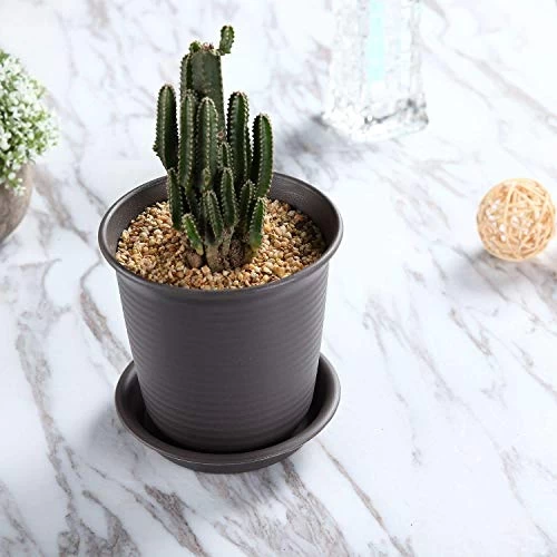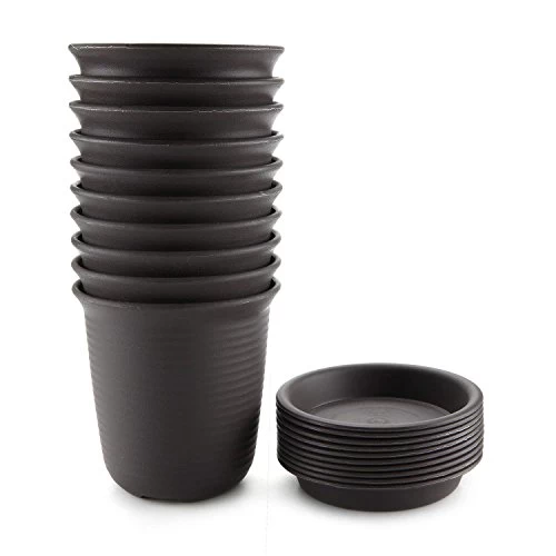 T4U 4.75 Inch Plastic Round Succulent Plant Pots With Saucers, Nursery Flower Pots With Pallet Dark Grey – Set Of 10
