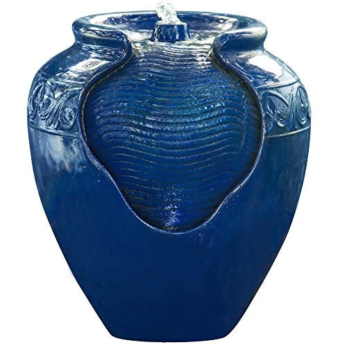 Water spills from the top and flows down the sides of the vase. Create a gentle presence with the soothing sounds of water.