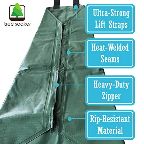 DURABLE: Our TREE SOAKER tree watering bag has a heavy-duty zipper and is made of a tough tarpaulin material that resists tearing and is UV stable so it won’t degrade in the hot sun.