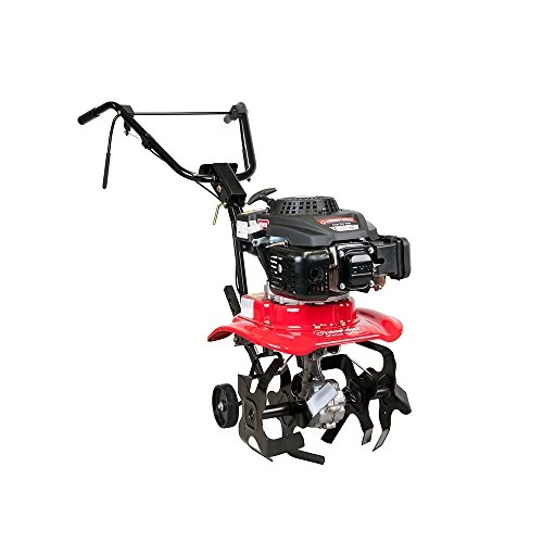The front tine tiller features a 159cc Troy-Bilt OHV engine with hardened steel tines that cut through soil with ease, resulting in finely tilled, well-aerated soil. With a height adjustable handle for improved grip and safe handing, and the ability to till up to 7 deep, the front tine tiller is designed for premium garden soil preparation.
