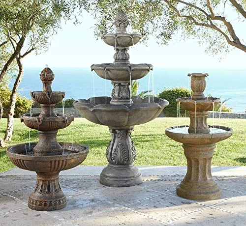 This classically styled indoor/outdoor fountain features a three tier design in a natural dark stone finish. Water cascades gently from the top level down, creating a pleasant look and sound. Lightweight resin construction is easy to place before filling with water. This beautiful design is a calming accent for your home or garden.