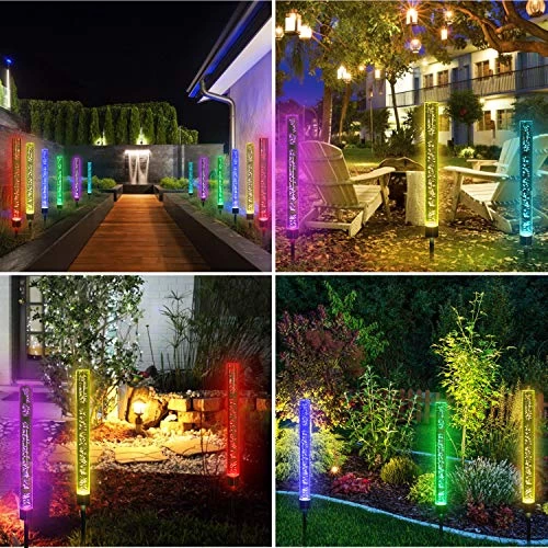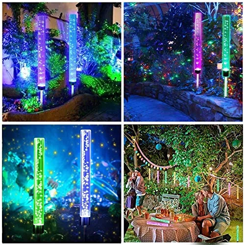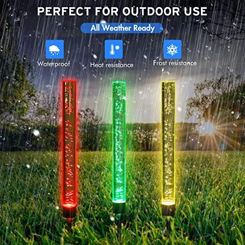 💈【Newest Version Outdoor Solar Tube Lights】3 pcs RGB color changing solar powered transparent acrylic bubble garden stake lights.We also upgraded a wider solar panel which converts sunlight into power faster and more efficient in cloudy weather.►Sold by【MMHF】and Fulfilled by Amazon.All others are fake,Please note when buying!