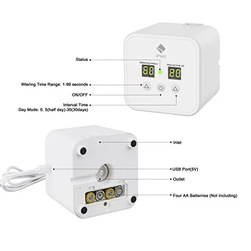 【Two Types of Power】Run the indoor plant irrigation system, with 4 AA batteries or USB connection power. When the battery and USB power supply exist at the same time, the system will give priority to USB charger power .Simultaneous use can prevent power outages.(Power Not Included).