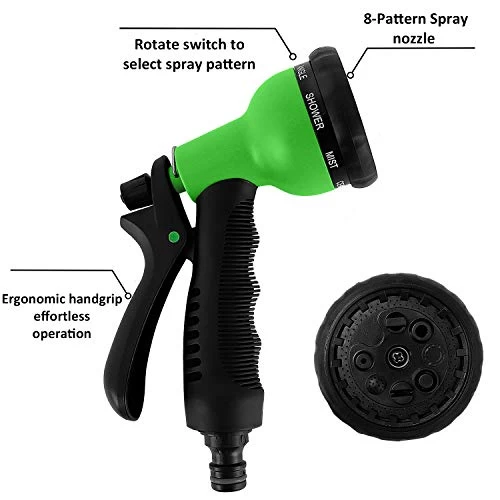 Meet Various Needs.:Its expanding design and 7 adjustable patterns make it ideal for your life. the rubberized outer coating is slip-resistant and comfy; water controlling knob for changing the water pressure; rotating bezel for easy choosing kind of spray. Select right type of the stream and water plants, clean garden or pool, shower pet or wash car.
