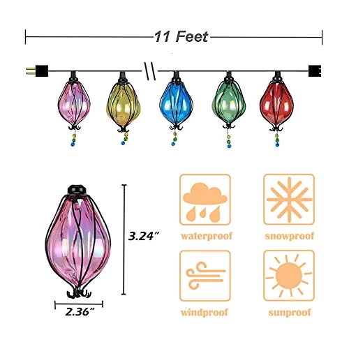 💡10 colored Bulbs & Connectable:The total length of the decorative fairy string lights is 11 feet with 10 colored bulbs.The end-to-end connection allows this multicolor patio lights to decorate a larger area.