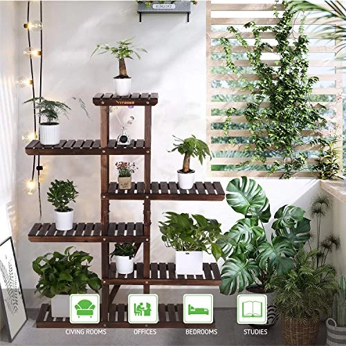 LARGE CAPACITY: Made of 6 wooden shelves that can accommodate 12 flower pots, perfect for decorating your home.
