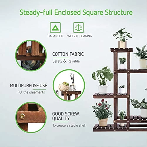 LARGE CAPACITY: Made of 6 wooden shelves that can accommodate 10 flower pots, perfect for decorating your home.
