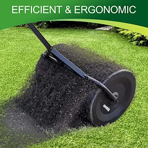 MULTIFUNCTIONAL SPREADER: The peat moss spreader can break up the clumpy materials while tumbling, ensuring an even flow and spread of product on the lawn or garden. Its intensive mesh openings can leave the bigger chunks of debris in the spreader. This soil lawn spreader equably distributes compost, manure, dirt, peat moss, and other topdressing materials to plant, feed, and weed your lawn and garden.