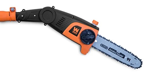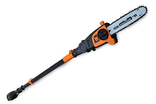 Remember when you could reach the unreachable? The WEN 40V Max Lithium Ion 10-Inch Cordless Pole Saw combines a high quality chainsaw with the most recent advances in pole technology. Extend the saw anywhere from 7.1 feet up to 10 feet in length, helping you to cut even the most difficult branches. Our lightweight brushless motor limits maintenance needs while elongating the lifespan of the unit. The adjustable head pivots up to 30° in either direction while the motor rotates up to 4800 times per minute. Our design allows for tool-free blade changes and adjustments as well as emission-free operations. Eliminate the hassles of most pole saws, meaning no more gasoline, no more extension cords, and minimal upkeep. Compatible with the WEN 40401 40V Max Lithium Ion- 2Ah Rechargeable Battery, WEN 40404 40V Max Lithium-Ion 4Ah Rechargeable Battery, and WEN 40400C 40V Max Lithium-Ion Quick Charger (sold separately). This package includes a 10-inch guide bar, a 10-inch chain (3/8 inch pitch, .05 inch gauge, 40 drive links), a shoulder strap, and a scabbard. And because its a WEN product, your 40V pole saw comes backed by a two-year warranty, a nationwide network of skilled service technicians and a friendly customer help line all to make sure you remember WEN.