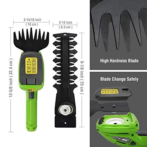 ✅ High Performance – 2-in-1 design makes the switch from mowing to hedgerow quick and easy (4-23/32 inch long shrub shear & 3-35/64 inch wide grass shear). 1100rpm no-load speed is able to provide high power for best cutting results, which is perfect for Trimming & Pruning: Trees, Branches, Shrubs, Bushes.