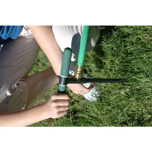 Our Tree Watering Tool delivers water directly to the root zone of trees and shrubs. Saves water by eliminating wasteful runoff or evaporation. Encourages deep root growth. Easily attaches to a water-soluble hose end sprayer for use as a root feeder. Drills its own holes, avoiding digging. Leaves beneficial aeration holes. Dozens of additional uses as a water blaster. Yard Butler guarantees all Yard Butler tools for life against any defects in manufacturing or materials.